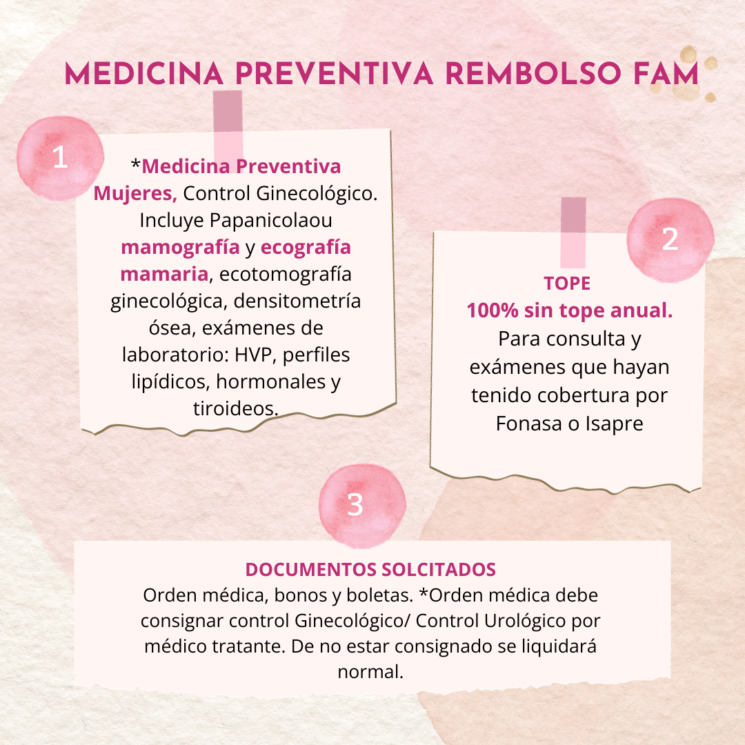 Las usuarias de Fonasa pueden acceder a la mamografía con copago 0, es decir, sin costo. Para ello, deben acercarse a su consultorio o Centro de Salud Familiar (CESFAM).